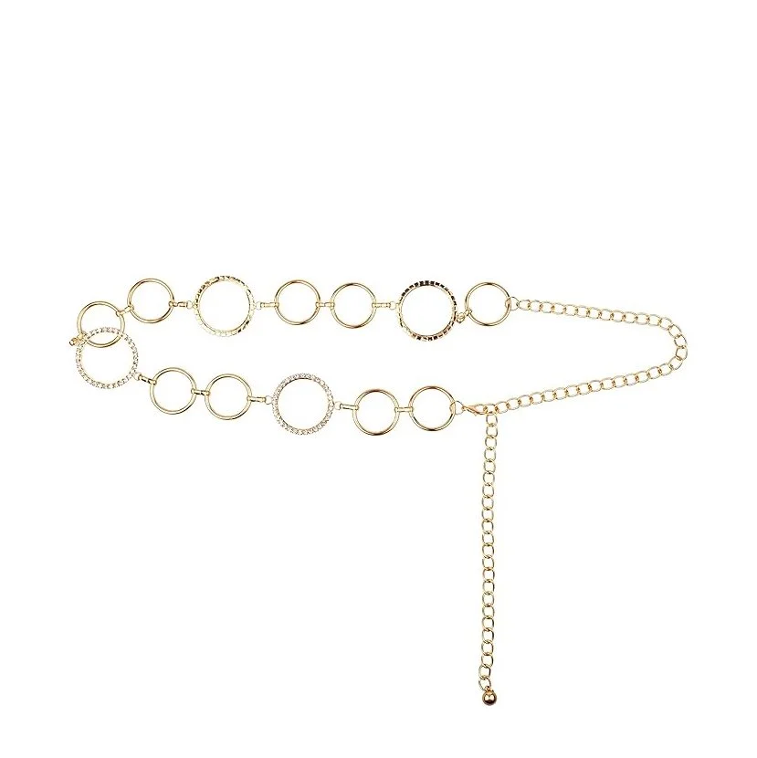 ELEGANT DESIGN: Gold-tone circle chain belt featuring stunning rhinestone accents for a sophisticated, eye-catching look