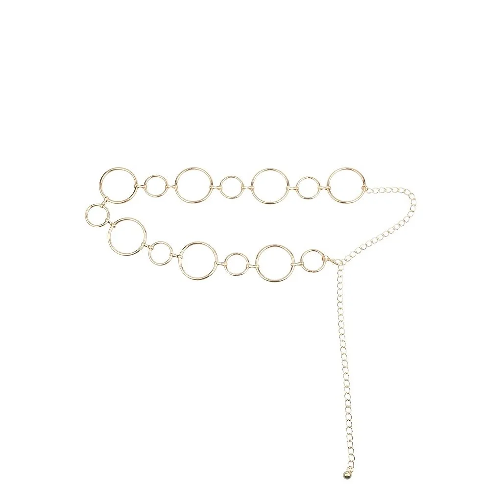 STYLISH DESIGN: Trendy goldtone circle chain belt featuring connected rings for a modern, fashionable look that elevates any outfit