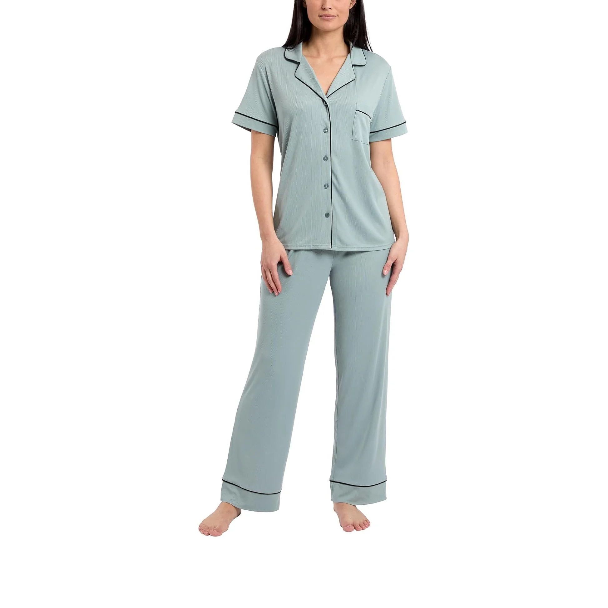 Notch Collar Button Down PJ Set