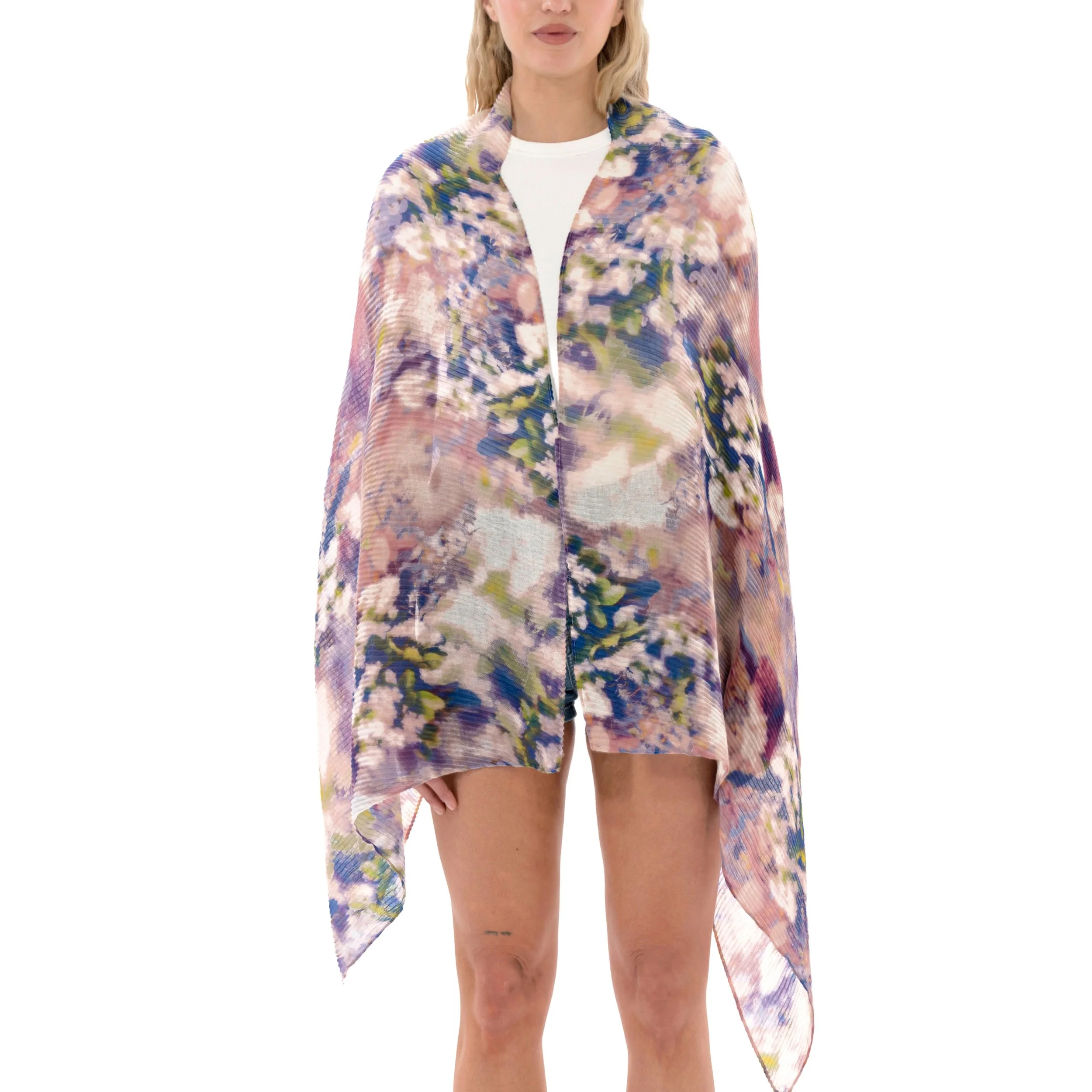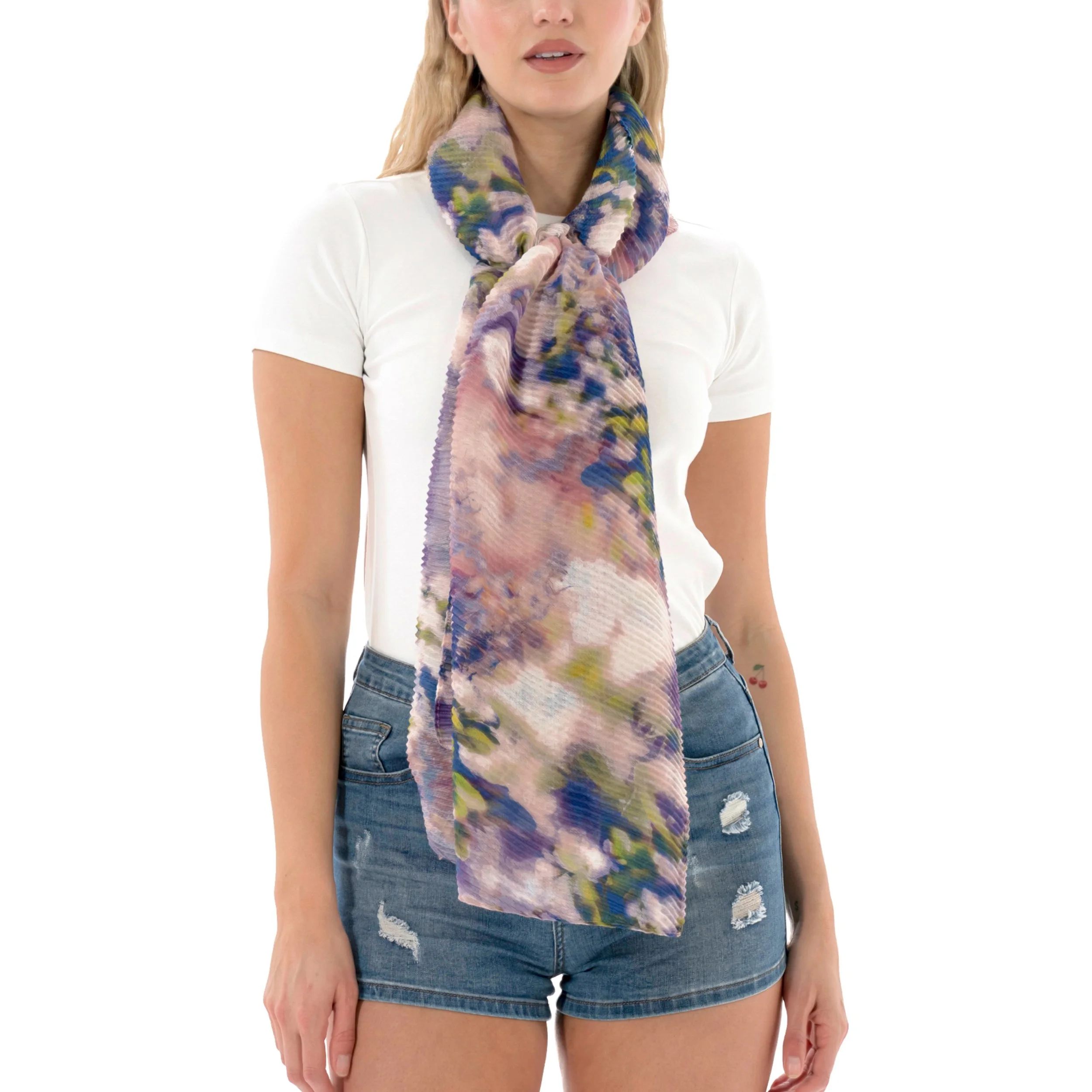 A lightweight oblong scarf with a pleated texture and a watercolor print brings an effortless lift to your look.