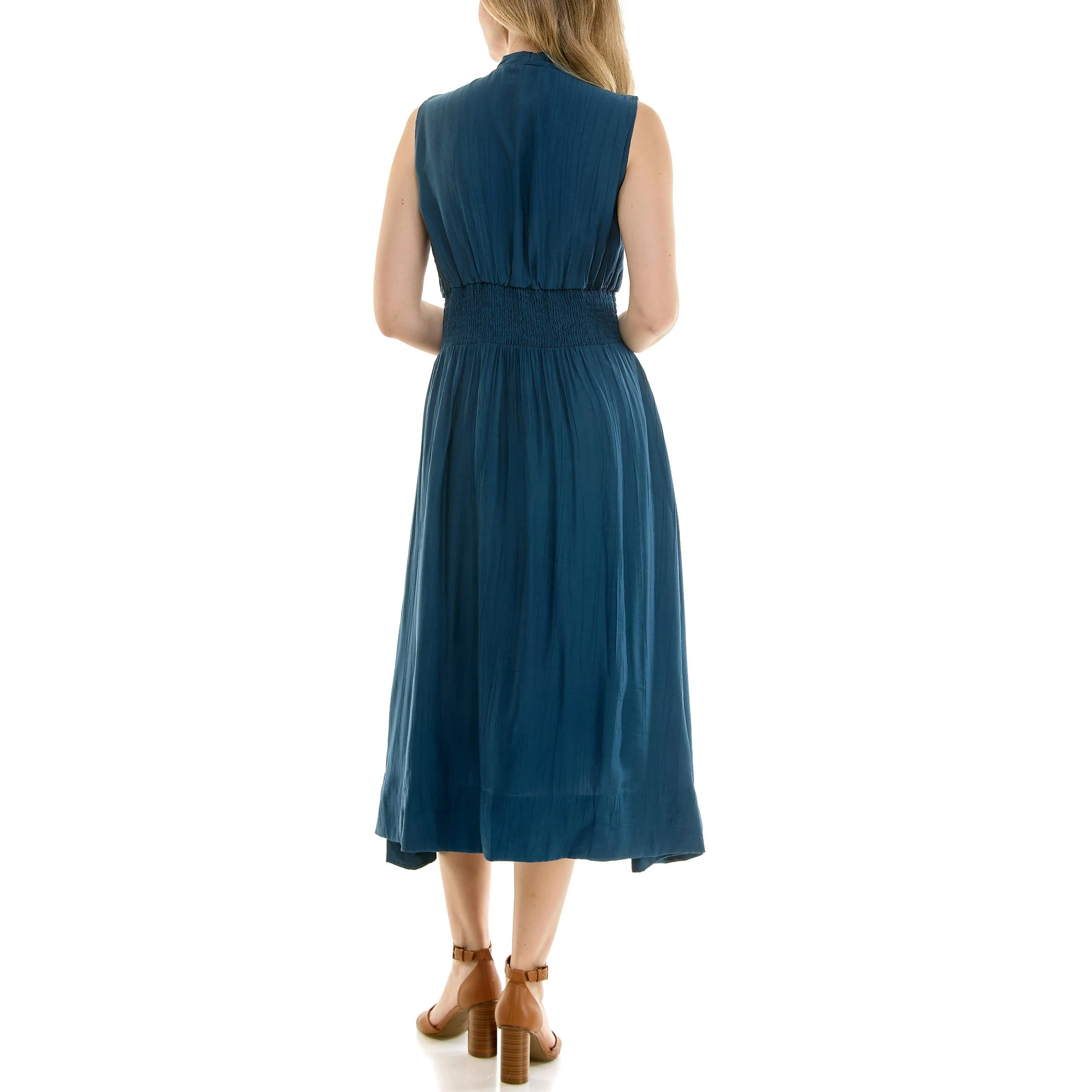 Smocked Waist Zip Front Midi Dress