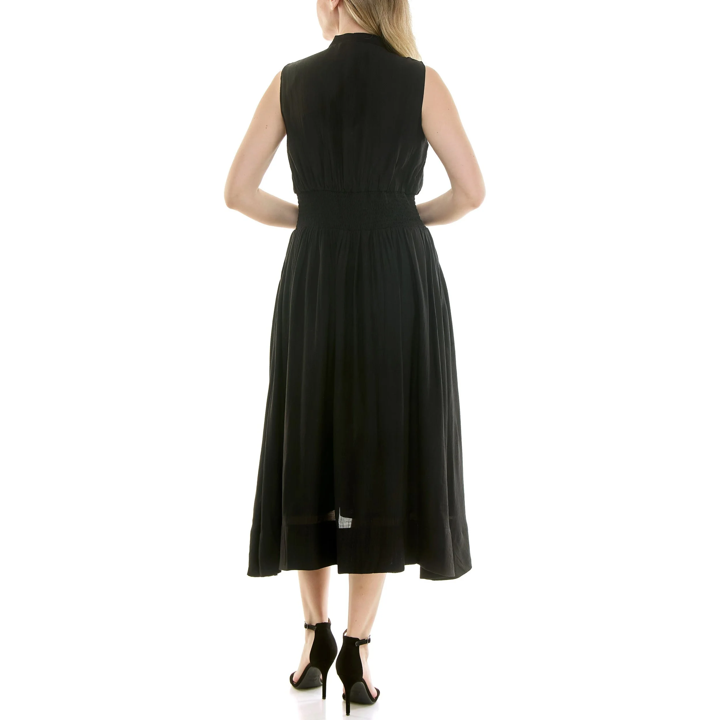Smocked Waist Zip Front Midi Dress